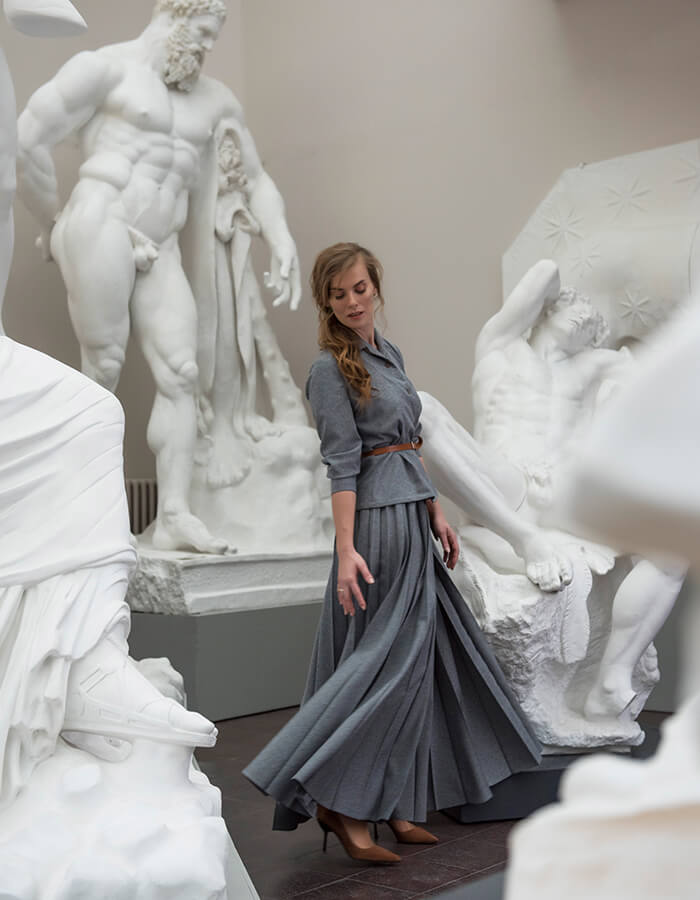 Wir waren im Museum und haben uns nicht nur Kunst angeschaut, sondern eine neue Modestrecke fotografiert. Unser Motto dieses Mal: Braun & Grau – Ein perfektes Duo. Zudem stehen auch die Schnittmuster der Styles für euch zum Download und Nachnähen bereit.